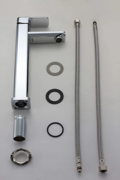 | Inkl. 50 cm flexiblen Anschlussschläuchen 3/8", Überwurfmutter und Dichtungen |